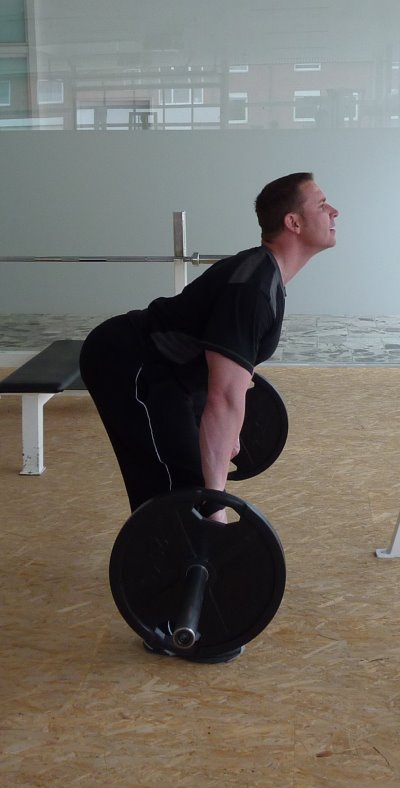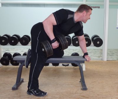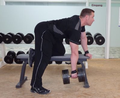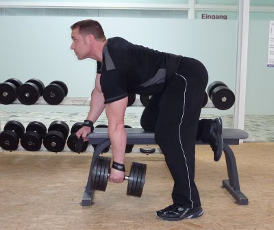Der Rücken, mit seinem komplexen Muskelapparat, gehört zu den umfangreichsten Themen, wenn es um das Training bzw. den Muskelaufbau geht. Neben der oberflächlichen Rumpfmuskulatur, die eine Bewegungs- und Stützfunktion hat, gibt es noch die Tiefenmuskulatur, mit ihren vielen kleinen Muskeln, die hauptsächlich zur Stabilisierung der Wirbelsäule dienen. An dieser Stelle möchte ich nur auf die für das Bodybuilding relevanten Muskeln eingehen und mich nicht zu sehr in fachlichen Bezeichnungen, Funktionen und Unterteilungen verwickeln. Da der ganze Bewegungsapparat des Rückens meistens als eine gesamte Einheit funktioniert, ist es oft nicht möglich, bestimme Rückenmuskeln bzw. Bereiche, einzeln zu trainieren. Mit den verschiedenen Übungen, kann man somit meistens lediglich regionale Schwerpunkte setzen, um mehr oder weniger gezielte Bereiche zu trainieren. Ich möchte den Rücken, der Einfachheit halber in diesem Kapitel, in drei Areale aufteilen, um auch Anfängern den Überblick zu verschaffen, das Training zielgerichtet nach den jeweiligen Bedürfnissen anzupassen. Diese Einteilung ist nicht medizinisch / anatomisch korrekt und dient lediglich zur Veranschaulichung des Muskeltrainings für meine Homepage. Die Einteilung erfolgt in: - Seitlicher Rücken (Latissimus dorsi) - Hinterer Rücken (Rhomboideus major/minor, Trapezius, Infraspinatus, Terres minor/major) - Unterer Rücken (Erector spinae). Der seitliche Teil des Rückens, der einem die eigentliche Breite visualisiert, ist der Latissimus dorsi oder umgangssprachlich als „Lat“ bezeichnet. Als Trainingsübungen hierfür eignen sich Klimmzüge, Latziehen zur Brust / in den Nacken und Überzüge verschiedenster Art. Beim Latziehen oder den Klimmzügen, erweißt sich ein breiter Griff (über schulterbreit), entweder zur Brust oder in den Nacken gezogen, als sehr effektiv, wenn es um den Muskelaufbau des Latissimus dorsi geht. Egal ob man Latziehen an einem Kabelzug oder an einer Maschine macht, sollte man stets auf einen ausreichend großen Abstand der Hände achten. Es richtet sich im Allgemeinen nach der Armlänge bzw. der Länge der Zugstange. Ich empfehle einen möglichst breiten Griff, von ca. 40 Grad (Vertikal beginnend), damit die Oberarme so wenig wie möglich bei Zugleistung unterstützen. Denn je enger der Griff und je näher die Hände zusammen sind bei der Übung, desto mehr zieht man aus dem Oberarm und involviert den Bizeps. Ein übertrieben breiter Griff jedoch ist ebenfalls nicht effektiv, da man so zu wenig Kraftübertragung hat und der Latissimus Muskel nicht ausgelastet werden kann. Für Anfänger empfehle ich diverse Latzugmaschinen zu verwenden, da es einfacher ist, die Bewegung korrekt auszuführen und das Balancieren hier wegfällt. Für Fortgeschrittene jedoch ist die Übung am Kabelzug wesentlich effektiver und in den allermeisten Fällen ist hier auch ein wesentlich höheres Gewicht möglich, da bei den herkömmlichen Maschinen oft ein Gewichtslimit besteht. (Entweder durch zu wenig Gewichtsscheiben/Gewichtspakete, Umlenkrollen, Hebelpunkte etc.). Latziehen mit relativ hohem Gewicht, sollte man auf jeden Fall mit der Stange zur Brust ziehen (Latziehen Frontversion), da man auf diese Weise die Schultergelenke nicht so belastet, als bei der Zugvariante in den Nacken. Außerdem ist dieses auch eine wesentlich natürlichere Bewegung. Beim Ziehen in den Nacken, sollte man unbedingt darauf achten, den untersten Punkt der Bewegung bereits auf Höhe der Ohren zu beenden. Andernfalls riskiert man durch das zu tiefe Ziehen eine Schädigung der Schulter, genauer gesagt, des Gelenkapparates, einschließlich Bänder und Sehnen, die in diesem Bereich dadurch unnötig stark belastet werden. Für die Klimmzüge gilt im Übrigen das Gleiche, wie für das Latziehen. Der Unterschied besteht lediglich darin, dass man sein Eigengewicht in der positiven Bewegung nach oben, anstatt beim Latziehen, das Gewicht nach unten zieht. Um nun den Bereich der Rückenmuskulatur zu verändern und andere Muskelfasern zu belasten, hat man mehrere Möglichkeiten. Man kann mit der Griffbreite variieren oder benutzt andere Griffe. Dieses führt dazu, dass ein Teil der Belastung durch andere Bereiche oder gar andere Rückenmuskeln stärker trainiert werden. Unter Verwendung des Parallelgriffes (Handinnenflächen zeigen zueinander), erfährt man während der Übung, vorausgesetzt man führt eine vollständige Bewegung bis nach unten aus, eine wesentlich stärkere Belastung des unteren Teiles des Latissimus dorsi. Des Weiteren eignet sich auch der unterste Punkt, als gute Dehnkomponente. Außerdem kann man bei dieser Art der Übung ein relativ hohes Gewicht bewältigen, da die Oberarme doch stark unterstützen. Für den Parallelgriff benutzt man entweder einen sehr schmalen Griff oder einen Parallelholmgriff, der meistens etwas über schulterbreit ist. Diese beiden Griffe bieten schon alleine eine große Abwechslung lediglich dadurch, dass der Abstand der Hände unterschiedlich ist. Die Auswahl dieser beiden Griffkomponenten eignet sich sowohl für das Latziehen am Kabelzug von oben, als auch beim Rudern am Kabelzug. Eine weitere Griffmöglichkeit ist der Kehrgriff. Dabei zeigen die Handinnenflächen zu sich hin und man umfasst in schulterbreitem Griff die gerade Zugstange. Ein engeres Greifen macht es nicht möglich, das Gewicht geradlinig nach unten zu ziehen und ist deshalb zu vermeiden. Etwas breiter als schulterbreit zu fassen ist möglich, aber die Ideallinie ist und bleibt schulterbreit, da hier auch eine optimale Kraftübersetzung ist und man auch das meiste Gewicht bewältigen kann. Als weitere Möglichkeit um den Latissimus dorsi zu trainieren, eignen sich die Überzüge. Man kann sie am Kabelzug, mit einer Kurzhantel oder an einer Pullovermaschine ausführen. (Überzüge werden zum Teil auch von der Brustmuskulatur ausgeführt und deshalb auch als eine mögliche Brustübung aufgeführt. Als Brustübung sind Überzüge jedoch nich