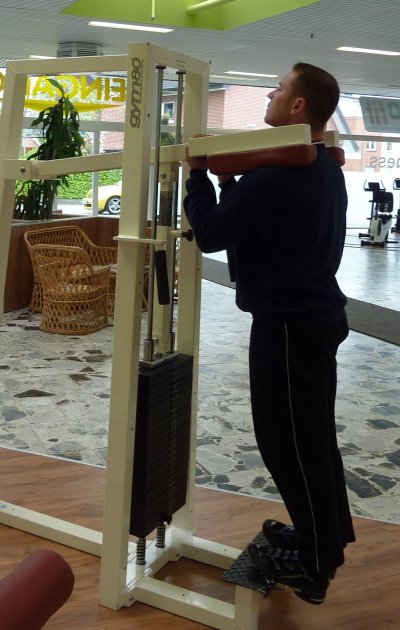 Als erstes möchte ich sagen, dass es wenig Sinn macht, die Waden jeden Tag zu trainieren, in der Hoffnung, sie dadurch zum Wachstum zu bringen, denn wie jeder andere Muskel, braucht auch die Wade eine Regenerationszeit, um zu wachsen. Doch ist die Wade regenerativ ziemlich schnell und man kann sie jeden dritten Tag trainieren, vorausgesetzt man hat Lust darauf und der Muskelkater hält nicht so lange an. Ich persönlich bin der Meinung, dass ein ausgiebiges Wadentraining zweimal in der Woche für die meisten Athleten reicht. (Ausnahmen gibt es immer…siehe Arnold Schwarzenegger). Die Waden sind eine störrische Muskelgruppe, die, wenn man nicht gerade genetisch dazu veranlagt ist, ziemlich schwer aufzubauen ist für Viele. (Mich eingeschlossen!) Doch gibt es auch hier einige Möglichkeiten, um sie dennoch zum Wachstum zu zwingen und darüber hinaus, auch noch Abwechslung in sein Training zu bringen. Eine Möglichkeit ist das „UP AND DOWN“ Prinzip, welches ich selber einige Monate ausprobiert habe und wirklich zum Wachstum beigetragen hat, obwohl das herkömmliche Wadentraining bei mir stagnierte. Das Prinzip ist sehr einfach und der Name verrät es ja auch schon. Nach einem normalen Aufwärmzyklus (2-3 Sätze) beginnt man am besten mit einem relativ hohen Gewicht, mit dem man etwa 6-8 Wiederholungen schafft und im nächsten Satz, wählt man dann ein Gewicht mit dem man 20-30 Wdh. macht. Dieses wiederholt man dann immer im Wechsel. Die Pause, nach dem Satz mit den vielen Wiederholungen, sollte logischerweise etwas länger sein, um sich zu erholen, damit man auch möglichst schwer in dem jeweiligen Folgesatz trainieren kann. Jeweils mindestens vier Sätze, sollte man bei den verschiedenen Übungen absolvieren. Wadenheben im Stehen ist mein persönlicher Favorit für dieses Prinzip, aber auch sitzendes Wadenheben eignet sich sehr gut dafür. Insgesamt 16-20 Sätze, bei zwei oder drei verschiedenen Übungen, kann man den Waden ruhig zumuten, denn es sind ziemlich störrische Muskeln, die einiges vertragen können. Wer die Möglichkeit hat zum „Donkeyride“, kann es ebenfalls mal ausprobieren, obwohl es problematisch werden kann mit den schweren Sätzen, wenn man die freie Version macht, da irgendwann die Kapazität derjenigen Personen erreicht ist, die sich auf den Rücken setzen können… Doch bei einer Maschine für diese Übung, geht das natürlich problemlos. Leider verfügen die meisten Studios nicht über diese tolle Wadenmaschine. Seid glücklich, wenn ihr eine verwenden könnt! Für Abwechslung, bei den doch sehr begrenzten Übungen für die Wadenmuskulatur, kann ein veränderter Stand und das Ausrichten der Füße sorgen. Was sowohl die Standbreite als auch die Winkelausrichtung der Fußspitzen betrifft. Neben der erwünschten Abwechslung verhilft es außerdem, andere Bereiche der Wadenmuskulatur schwerpunktmäßig zu belasten. Gezielt eingesetzt, hat man so auch die Möglichkeit, die Waden tendenziell auf der Innen- oder Außenseite zu trainieren. Da die Wade stets als eine Einheit fungiert, wird es aber niemals möglich sein, eine komplette Trennung (Separation) der inneren und äußeren Wadenmuskeln zu erreichen. Doch bei stetiger gezielter Ausrichtung auf den einen oder anderen Bereich, kann man sicherlich tendenziell die Wade in seiner Formgebung beeinflussen. Ein enger Stand, wobei beide Füße etwa 5 Zentimeter Abstand voneinander haben, betont eher den äußeren Bereich der Wade. Ein breiter Stand (über 40 Zentimeter Fußabstand), betont zudem eher den inneren Bereich. (Voraussetzung ist ein paralleler Stand der Füße und der Druckpunkt mittig des Fußballens) Weitaus stärker fällt allerdings die Winkelstellung der Fußspitzen ins Gewicht, wenn es um die Belastungsschwerpunkte der Wade geht. Bei Fußspitzen, die während der Übungsausführung kontinuierlich weit nach außen zeigen und der Druckpunkt auf dem Fußballen nahe dem Großen Zeh liegt, wird der innere Bereich stark belastet. Dafür eignet sich eher ein relativ enger Stand. Dabei kann man die Hacken auch so nah aneinander stellen, dass sie sich berühren. Ein enger Stand mit den Fußspitzen nach innen zeigend, betont tendenziell mehr den äußeren Bereich der Wade, wobei der Druckpunkt auf dem Außenbereich des Fußballens liegen sollte und sich die Fußspitzen fast berühren. Gerade bei den Varianten mit einer veränderten Fußstellung bzw. Ausrichtung der Fußwinkel vom gewohnten Übungsstil, sollte man immer auf sein Körpergefühl achten und nicht partout darauf beharren, wenn es zu Schmerzen im Fußgelenk kommen sollte. Nicht jedes Fußgelenk kommt mit dieser Art von veränderter Fußstellung klar. Ein individuelles Anpassen an verschiedene Abstände und Fußstellungen, sollte immer nach eigenem Verträglichkeitsmaß gerichtet sein.